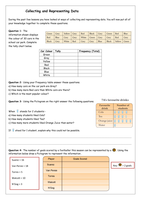 Collecting and Representing Data - Mixed Worksheet File previews. docx, 1.5 MB. 7 questions that can be used as an end of topic assessment tool, or just as a stand alone recap lesson. Tally Chart / Frequency Table; Drawing and Interpreting Pictograms, Drawing and Interpreting Bar Charts, Stem and Leaf Diagrams. Tes classic free licence.